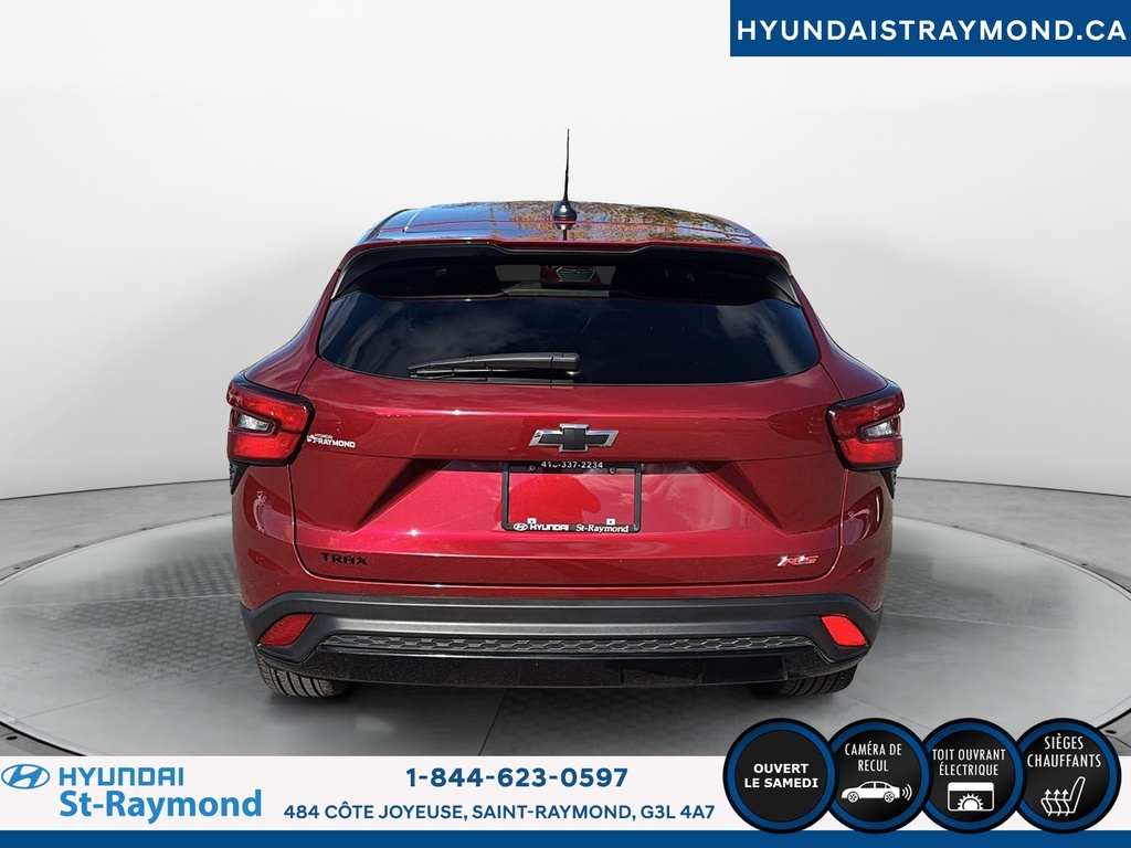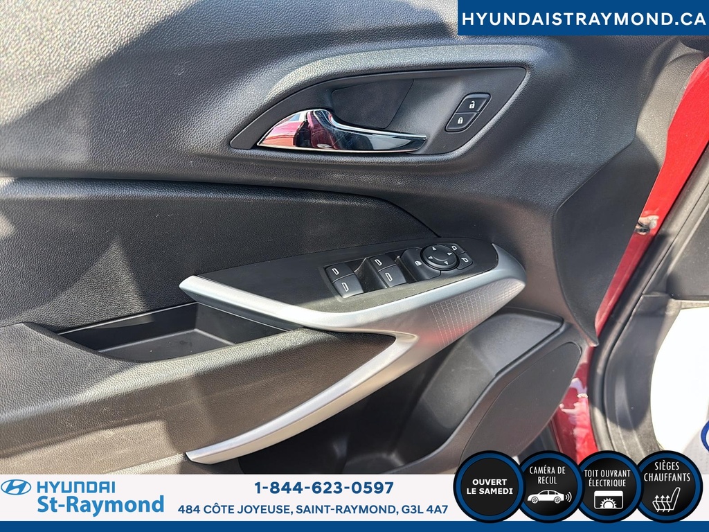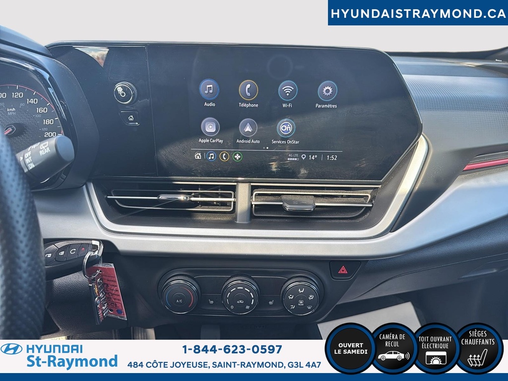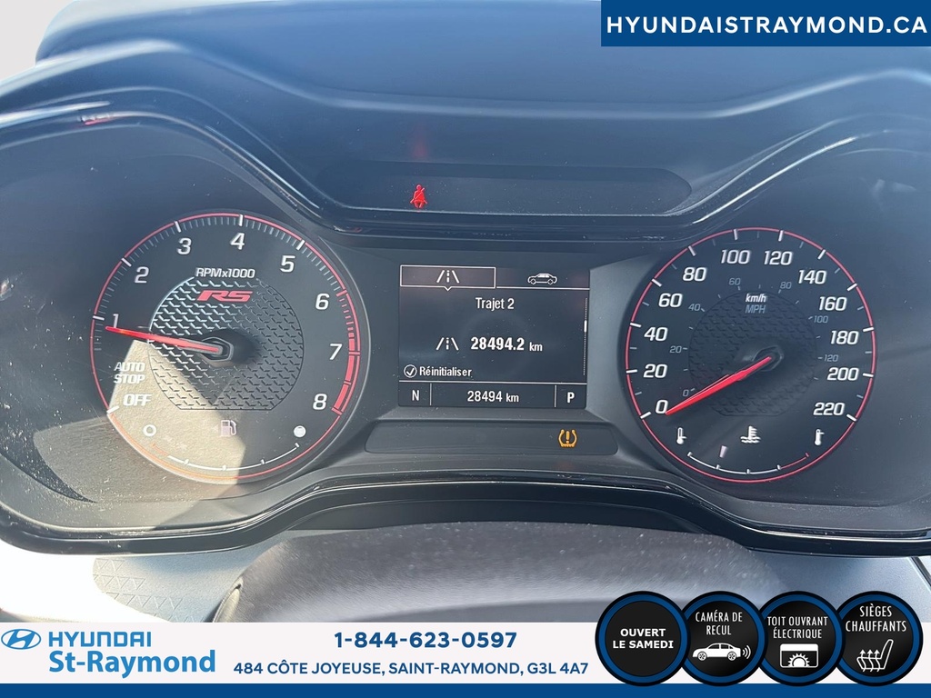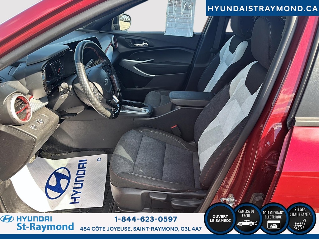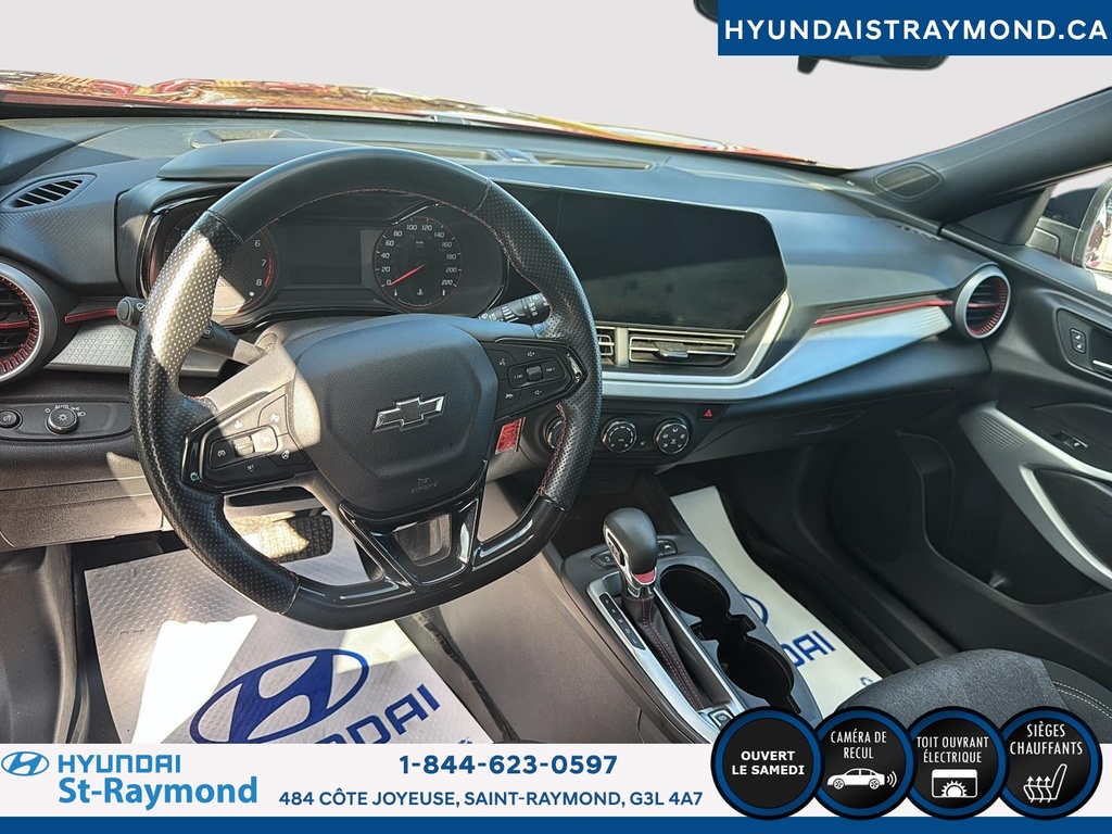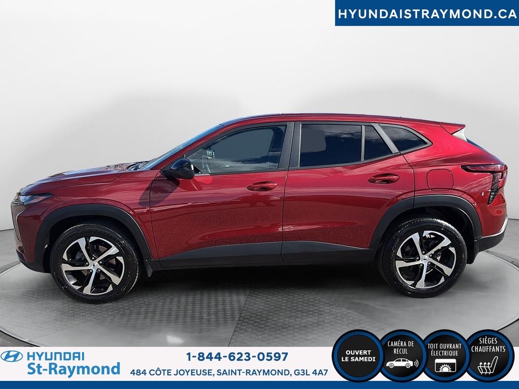 // JAMAIS ACCIDENTÉ! // // UN SEUL PROPRIÉTAIRE // // EXCELLENTE CONDITION! // Le Chevrolet Trax 1RS 4 portes TA 2024 offert chez Hyundai St-Raymond se distingue par son style dynamique et sa couleur rouge éclatante. Ce VUS compact, affichant 28 483 km, combine fiabilité, sécurité et technologies modernes pour répondre aux besoins quotidiens, le tout dans un format urbain polyvalent. CARACTÉRISTIQUES DE SÉCURITÉ AVANCÉES »» Avertissement de sortie de voie »» Caméra de recul pour manoeuvres précises »» Coussins gonflables latéraux »» Système de freinage antiblocage PERFORMANCE ET EFFICACITÉ »» Moteur 1,2 litre turbo »» Transmission automatique fluide »» Consommation écoénergétique pour la catégorie »» Rouage avant pour une conduite stable CONFORT »» Sièges avant chauffants »» Démarreur à distance inclus »» Rétroviseurs extérieurs chauffants »» Climatisation à réglage manuel TECHNOLOGIE ET CONNECTIVITÉ »» Intégration Bluetooth pour appels mains libres »» Écran central tactile »» Commandes audio au volant »» Prises USB accessibles à l'avant ESPACE DE CHARGEMENT »» Banquette arrière rabattable 60/40 »» Coffre modulable selon les besoins »» Ouverture du coffre assistée »» Espace de rangement sous le plancher APPRÉCIÉ DES AUTRES PROPRIÉTAIRES »» Facilité d'utilisation des commandes »» Maniabilité en ville »» Efficacité énergétique »» Confort des sièges avant chauffants GARANTIE Garantie originale du manufacturier: 24 Novembre 2026 ou 60000 Km Le NIV de ce Chevrolet Trax 1RS 4 portes TA 2024 est le KL77LGE21RC108502.
