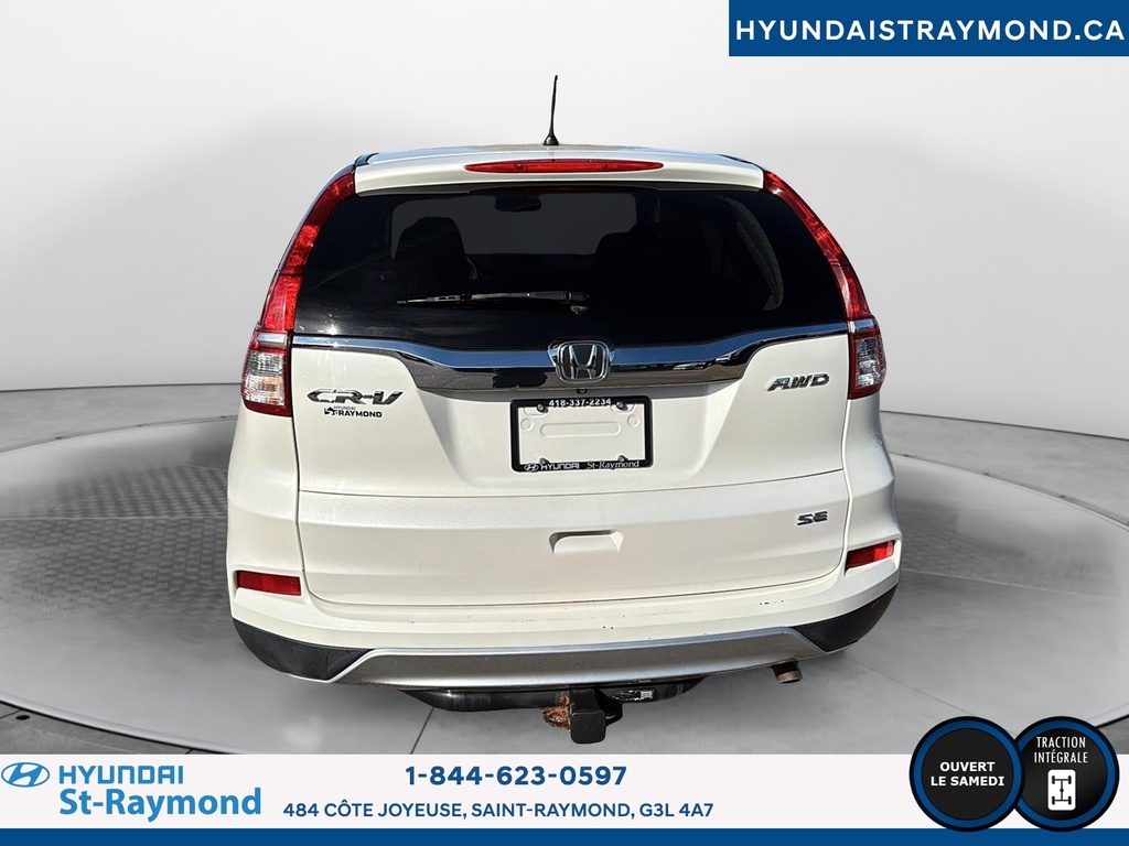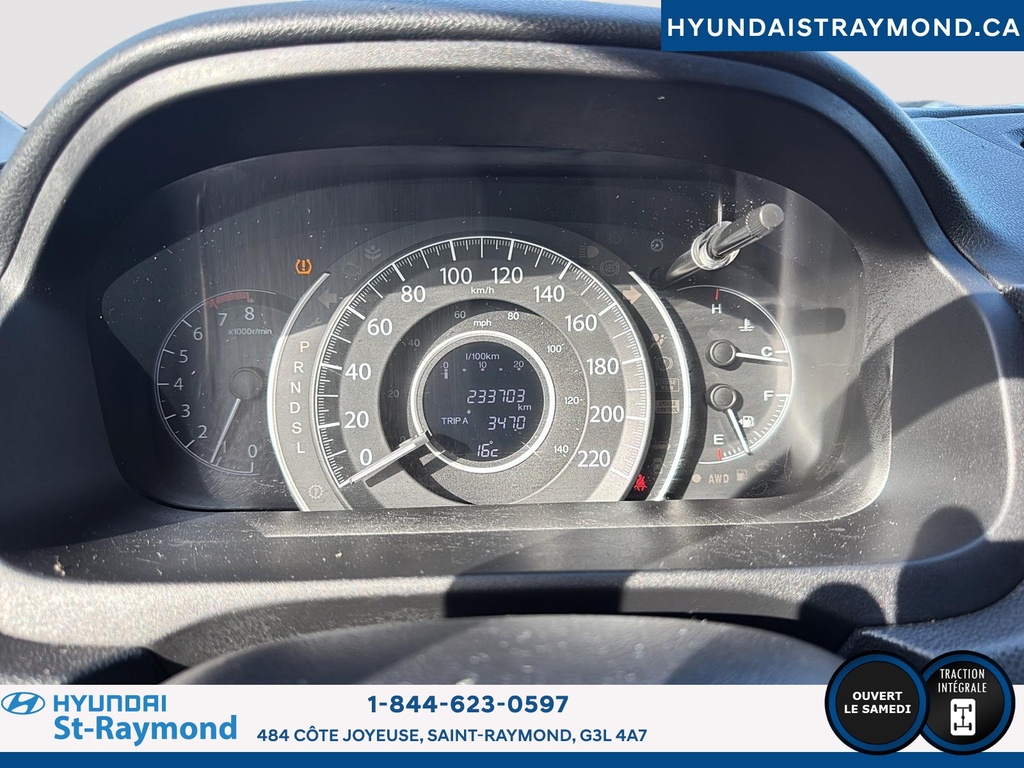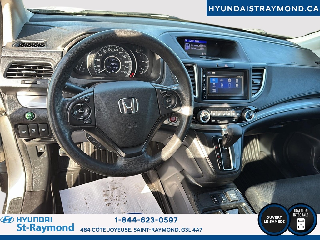 // UN SEUL PROPRIÉTAIRE // // EXCELLENTE CONDITION! // Ce Honda CR-V 2015 version SE 5 portes TI, affichant 233 001 km, est offert en blanc chez Hyundai St-Raymond. Doté d'une transmission automatique et d'un moteur 2,4 litres à essence sans plomb, ce VUS propose des caractéristiques pratiques et sécuritaires pour vos déplacements quotidiens. CARACTÉRISTIQUES DE SÉCURITÉ AVANCÉES »» Caméra de recul pour faciliter le stationnement »» Coussins gonflables latéraux pour une protection accrue »» Système de freinage antiblocage »» Contrôle de stabilité électronique PERFORMANCE ET EFFICACITÉ »» Moteur 2,4 litres à 4 cylindres »» Transmission automatique efficace »» Consommation de carburant compétitive »» Traction intégrale pour une meilleure adhérence CONFORT »» Sièges avant chauffants »» Démarrage par bouton-poussoir »» Rétroviseurs chauffants »» Climatisation à réglage manuel TECHNOLOGIE ET CONNECTIVITÉ »» Intégration Bluetooth pour appels mains libres »» Commandes audio au volant »» Système audio à écran »» Prise USB pour appareils mobiles ESPACE DE CHARGEMENT »» Banquette arrière rabattable 60/40 »» Coffre spacieux pour les bagages »» Plancher de chargement plat »» Ouverture du coffre assistée APPRÉCIÉ DES AUTRES PROPRIÉTAIRES »» Fiabilité reconnue du modèle »» Espace intérieur polyvalent »» Facilité d'entretien »» Conduite confortable en toutes saisons GARANTIE --> Garantie légale; --> Garantie d'usage; --> Garantie de durée raisonnable; --> Garantie contre les vices cachés. Le NIV de ce Honda CR-V SE 5 portes TI 2015 est le 2HKRM4H45FH109172.