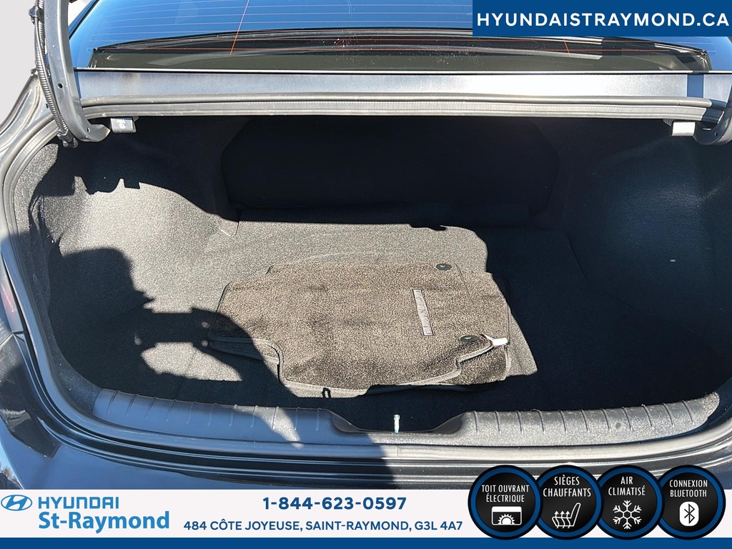 Le Hyundai Elantra 2023 version Preferred IVT avec ensemble technologie, offert par Hyundai St-Raymond, se démarque par sa fiabilité, son efficacité et son équipement moderne. Ce sedan noir, à transmission automatique, affiche 62 539 km. Il propose une expérience de conduite agréable et sécuritaire, idéale pour la vie quotidienne. CARACTÉRISTIQUES DU Elantra Preferred IVT avec ensemble technologie »» Démarrage par bouton-poussoir »» Toit ouvrant électrique »» Sièges avant chauffants »» Système de surveillance des angles morts CARACTÉRISTIQUES DE SÉCURITÉ AVANCÉES »» Avertissement de sortie de voie »» Caméra de recul »» Coussins gonflables latéraux »» Surveillance des angles morts PERFORMANCE ET EFFICACITÉ »» Moteur 2,0 litres »» Transmission automatique IVT »» Consommation écoénergétique reconnue »» Conduite stable et silencieuse CONFORT »» Sièges avant chauffants »» Rétroviseurs extérieurs chauffants »» Démarrage sans clé »» Toit ouvrant pour aération naturelle TECHNOLOGIE ET CONNECTIVITÉ »» Intégration Bluetooth »» Caméra de recul intégrée »» Commandes audio au volant »» Système d'avertissement de sortie de voie ESPACE DE CHARGEMENT »» Coffre spacieux pour la catégorie »» Ouverture du coffre à distance »» Banquette arrière rabattable »» Accès facile au coffre APPRÉCIÉ DES AUTRES PROPRIÉTAIRES »» Faible consommation de carburant »» Système de sécurité complet »» Confort de conduite au quotidien »» Technologie conviviale et accessible GARANTIE »» Garantie originale du manufacturier: 25 Août 2027 ou 100000 Km Le NIV de ce Hyundai Elantra Preferred IVT avec ensemble technologie 2023 est le KMHLM4AG9PU399428.