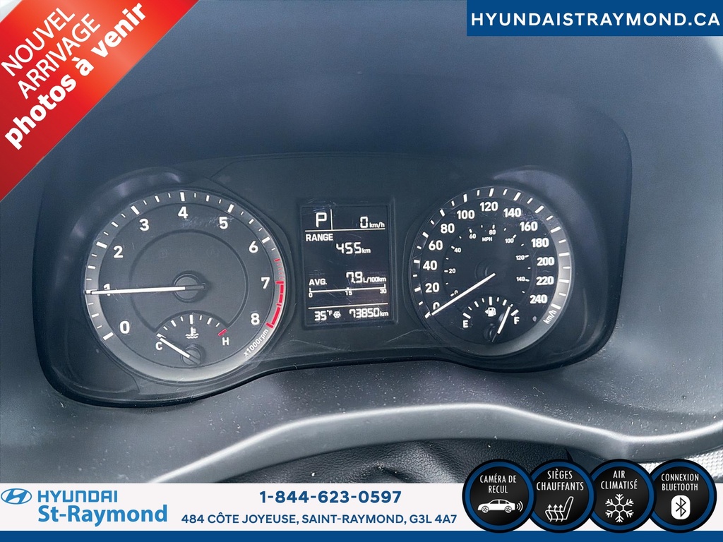 Ce Hyundai Kona 2021 2.0L Essential TA usagé, offert chez Hyundai St-Raymond à St-Raymond, est un VUS compact à traction avant pensé pour la conduite de tous les jours. Il affiche 73,850 km, une carrosserie blanche et un habitacle noir. Il est équipé d'une transmission automatique à 6 vitesses et d'un moteur 2,0 L à essence sans plomb. CARACTÉRISTIQUES DU Kona 2.0L Essential TA »» Moteur 2,0 L à essence sans plomb »» Transmission automatique à 6 vitesses »» Traction avant pour conduite quotidienne »» 4 portes, format VUS compact pratique CARACTÉRISTIQUES DE SÉCURITÉ AVANCÉES »» Système de freinage anti-blocage (ABS) »» Contrôle de stabilité électronique »» Coussins gonflables latéraux et latéraux de tête »» Serrures de sécurité enfant aux portes arrière PERFORMANCE ET EFFICACITÉ »» Moteur 2,0 L à essence sans plomb »» Transmission automatique à 6 vitesses »» Direction assistée pour manoeuvres faciles »» Traction avant pour conditions routières variées CONFORT »» Sièges avant chauffants pour l'hiver »» Climatisation avant pour confort en été »» Vitres électriques aux 4 portes »» Volant réglable, position de conduite adaptable TECHNOLOGIE ET CONNECTIVITÉ »» Intégration Bluetooth pour appels mains libres »» Commandes audio au volant, accès rapide »» Caméra de recul pour stationnement simplifié »» Phares automatiques, visibilité mieux gérée ESPACE DE CHARGEMENT »» Accès au coffre arrière pratique »» Couvre-bagage inclus pour dissimuler les effets »» Banquette arrière rabattable non mentionnée, non incluse »» Pneu de secours pour dépannage sur la route RÉCOMPENSES ET RECONNAISSANCES APPRÉCIÉ DES AUTRES PROPRIÉTAIRES »» Format compact facile à stationner en ville »» Position de conduite surélevée, bonne visibilité »» Sièges avant chauffants utiles au Québec »» Bluetooth et caméra de recul au quotidien GARANTIE Garantie originale du manufacturier: 16 Octobre 2025 ou 100000 Km. Garantie de bon fonctionnement B - 3 mois ou 5,000 km Avec ses équipements utiles comme la caméra de recul, les sièges avant chauffants, les rétroviseurs chauffants et l'intégration Bluetooth, ce Hyundai Kona 2021 2.0L Essential TA vise la simplicité et la fonctionnalité. Il est prêt pour vos déplacements à St-Raymond et les environs, avec une conduite facile et des commandes intuitives. Le NIV de ce Hyundai Kona 2.0L Essential TA 2021 est le KM8K12AA3MU619503 .