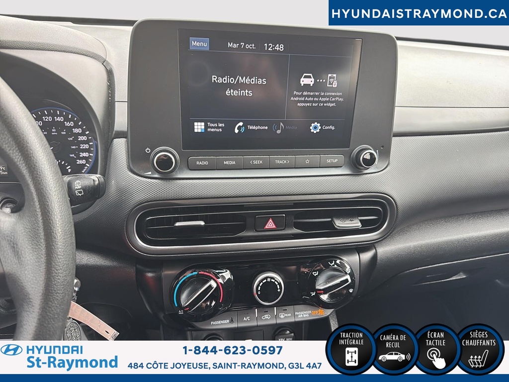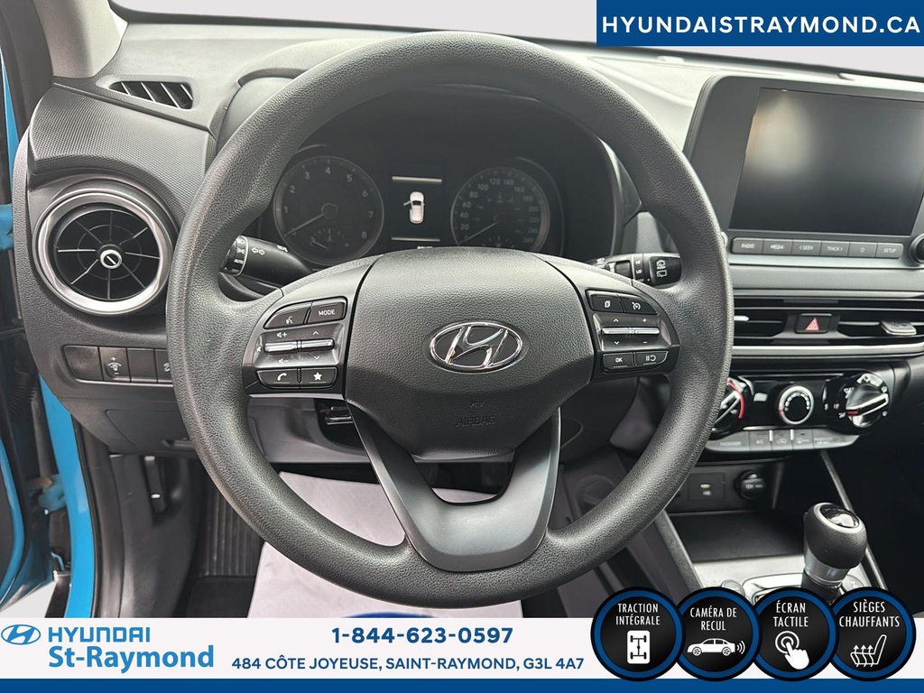 Le Hyundai Kona 2 L Essential Édition valeur TI 2022 bleu, offert par Hyundai St-Raymond, est un VUS usagé fiable avec transmission automatique et moteur 2,0 litres à essence. Il affiche 82 685 km à l'odomètre et propose un intérieur noir, 4 portes et plusieurs commodités recherchées. CARACTÉRISTIQUES DE SÉCURITÉ AVANCÉES »» Caméra de recul pour manoeuvres précises »» Coussins gonflables latéraux pour protection accrue »» Système de freinage antiblocage (ABS) »» Contrôle électronique de stabilité PERFORMANCE ET EFFICACITÉ »» Moteur 2,0 litres »» Transmission automatique à 6 rapports »» Consommation écoénergétique en conduite urbaine »» Traction avant pour une conduite stable CONFORT »» Sièges avant chauffants pour l'hiver québécois »» Rétroviseurs extérieurs chauffants »» Volant inclinable et télescopique »» Climatisation manuelle efficace TECHNOLOGIE ET CONNECTIVITÉ »» Intégration Bluetooth pour appels mains libres »» Système audio avec écran tactile »» Port USB pour recharge d'appareils »» Commandes audio au volant ESPACE DE CHARGEMENT »» Banquette arrière rabattable 60/40 »» Coffre adapté aux besoins quotidiens »» Ouverture du coffre assistée »» Espace optimisé pour les déplacements APPRÉCIÉ DES AUTRES PROPRIÉTAIRES »» Fiabilité reconnue au fil des années »» Facilité de stationnement en ville »» Confort de conduite au quotidien »» Consommation d'essence avantageuse GARANTIE Garantie originale du manufacturier: 30 Septembre 2026 ou 100000 Km Le NIV de ce Hyundai Kona 2 L Essential Édition valeur TI 2022 est le KM8K1CAB0NU802339 .