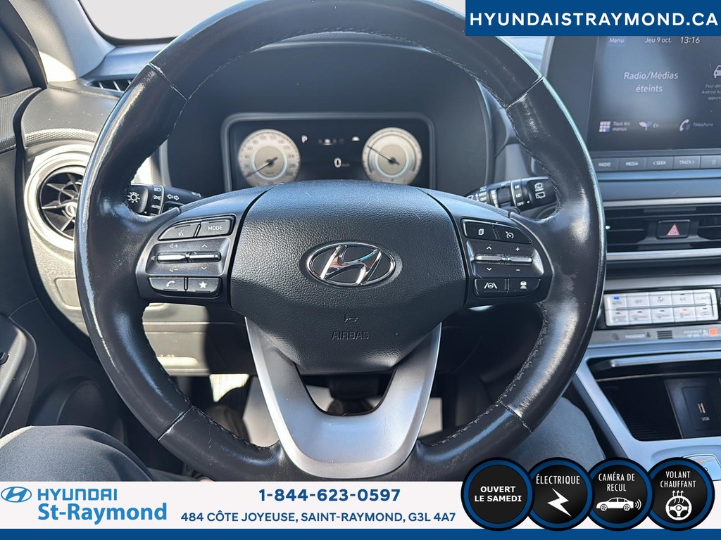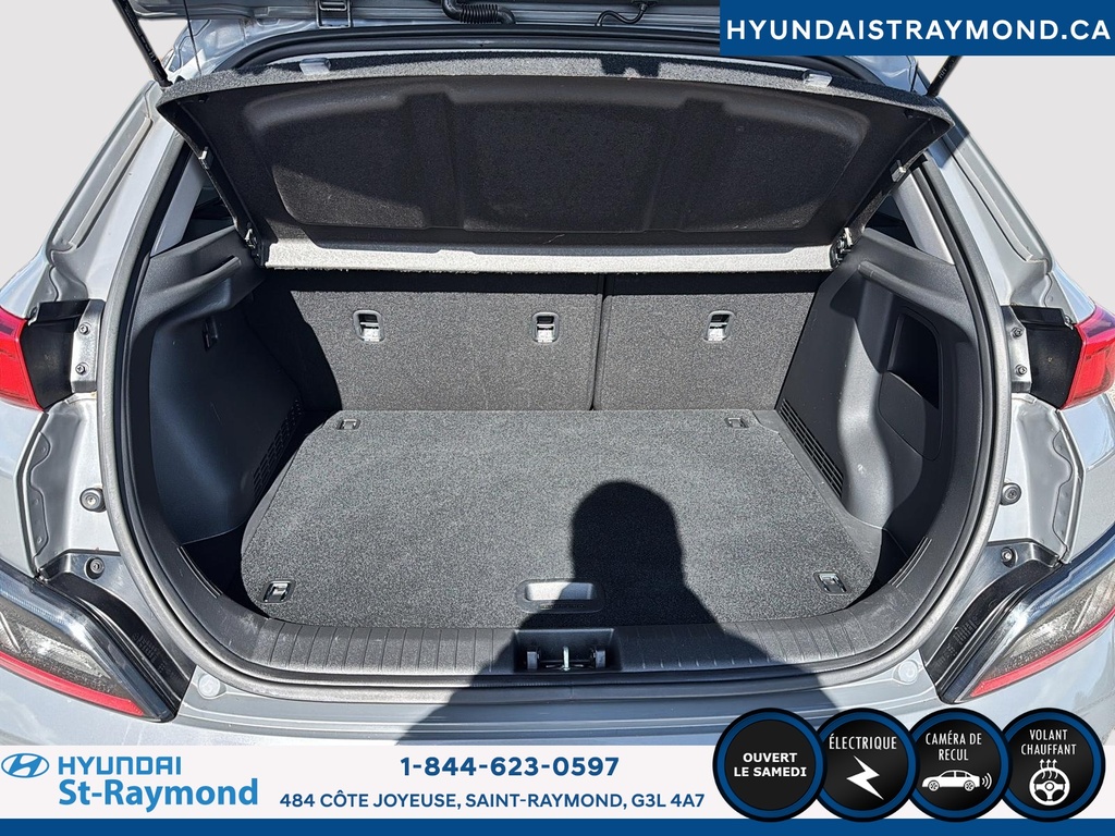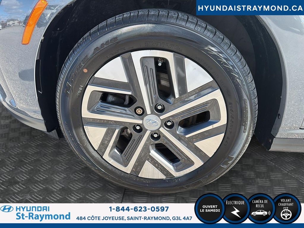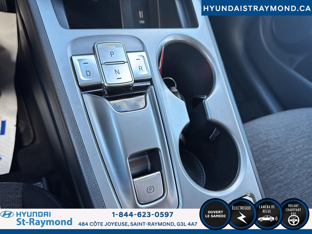 Le Hyundai Kona Electric Preferred TA 2022 est un VUS 100% électrique affichant 56 421 km. Son autonomie électrique appréciée et ses technologies de sécurité avancées en font un choix fiable pour la conduite quotidienne. Ce véhicule, couleur extérieure gris et intérieur noir, est offert chez Hyundai St-Raymond. CARACTÉRISTIQUES DU VÉHICULE ÉLECTRIQUE »» 100% électrique, sans émissions polluantes »» Autonomie estimée jusqu'à 415 km selon Ressources naturelles Canada »» Recharge possible à domicile ou borne rapide »» Fonctionnement silencieux et sans vibration CARACTÉRISTIQUES DE SÉCURITÉ AVANCÉES »» Avertissement de sortie de voie »» Caméra de recul pour stationnement facilité »» Coussins gonflables latéraux pour protection accrue »» Surveillance des angles morts PERFORMANCE ET EFFICACITÉ »» Transmission automatique pour conduite sans effort »» Accélération instantanée typique d'un véhicule électrique »» Freinage régénératif pour optimiser l'autonomie »» Faibles coûts d'entretien CONFORT »» Sièges avant chauffants »» Démarrage par bouton-poussoir »» Rétroviseurs extérieurs chauffants »» Climatisation automatique TECHNOLOGIE ET CONNECTIVITÉ »» Intégration Bluetooth pour appels mains libres »» Système audio compatible avec appareils mobiles »» Écran central tactile intuitif »» Commandes audio au volant ESPACE DE CHARGEMENT »» Coffre arrière pratique pour usage quotidien »» Banquette arrière rabattable pour espace flexible »» Accès facile grâce aux 4 portes »» Espace optimisé pour passagers et bagages APPRÉCIÉ DES AUTRES PROPRIÉTAIRES »» Autonomie électrique fiable au quotidien »» Conduite silencieuse et agréable »» Facilité d'utilisation des technologies »» Coûts d'utilisation réduits GARANTIE Garantie originale du manufacturier: 23 Février 2027 ou 100000 Km Le NIV de ce Hyundai Kona Electric Preferred TA 2022 est le KM8K23AG4NU149491.