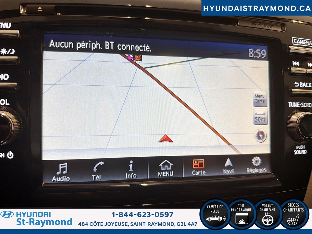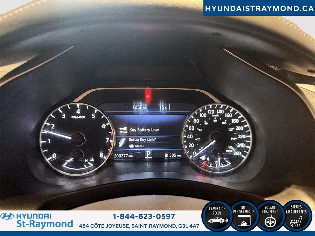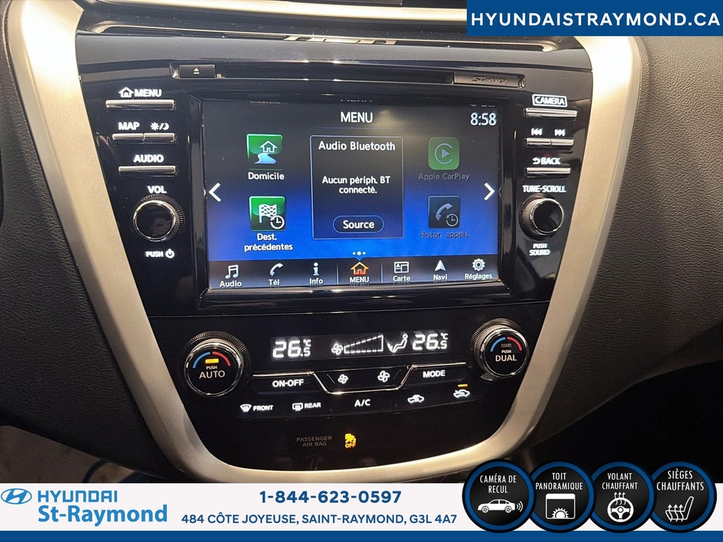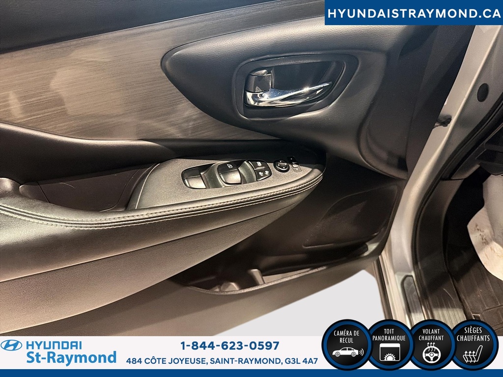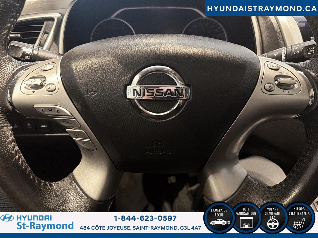 Le Nissan Murano 2017 Traction intégrale 4 portes SV offre un équilibre entre style, confort et technologies pratiques. Ce VUS argenté, affichant 200 264 km, propose une expérience de conduite agréable grâce à sa motorisation 3,5 litres et ses nombreuses fonctionnalités, parfait pour les familles ou les déplacements quotidiens. CARACTÉRISTIQUES DE SÉCURITÉ AVANCÉES »» Système de freinage anti-blocage (ABS) »» Contrôle de stabilité »» Coussin gonflable conducteur »» Coussins gonflables latéraux PERFORMANCE ET EFFICACITÉ »» Moteur V6 3,5 litres sans plomb »» Transmission automatique à variation continue »» Direction assistée »» Surveillance de la pression des pneus CONFORT »» Siège conducteur à réglage électrique »» Sièges avant chauffants »» Contrôle de climatisation à deux zones »» Volant réglable TECHNOLOGIE ET CONNECTIVITÉ »» Système de navigation (GPS) »» Caméra de recul »» Intégration Bluetooth »» Commandes audio au volant ESPACE DE CHARGEMENT »» Hayon électrique »» Ouverture à distance du coffre »» Accès au coffre arrière »» Pneu de secours inclus APPRÉCIÉ DES AUTRES PROPRIÉTAIRES »» Conduite stable et silencieuse »» Technologies conviviales »» Sièges avant confortables »» Espace intérieur apprécié GARANTIE --> Garantie légale; --> Garantie d'usage; --> Garantie de durée raisonnable; --> Garantie contre les vices cachés. Le NIV de ce Nissan Murano Traction intégrale 4 portes SV 2017 est le 5N1AZ2MH0HN177308.