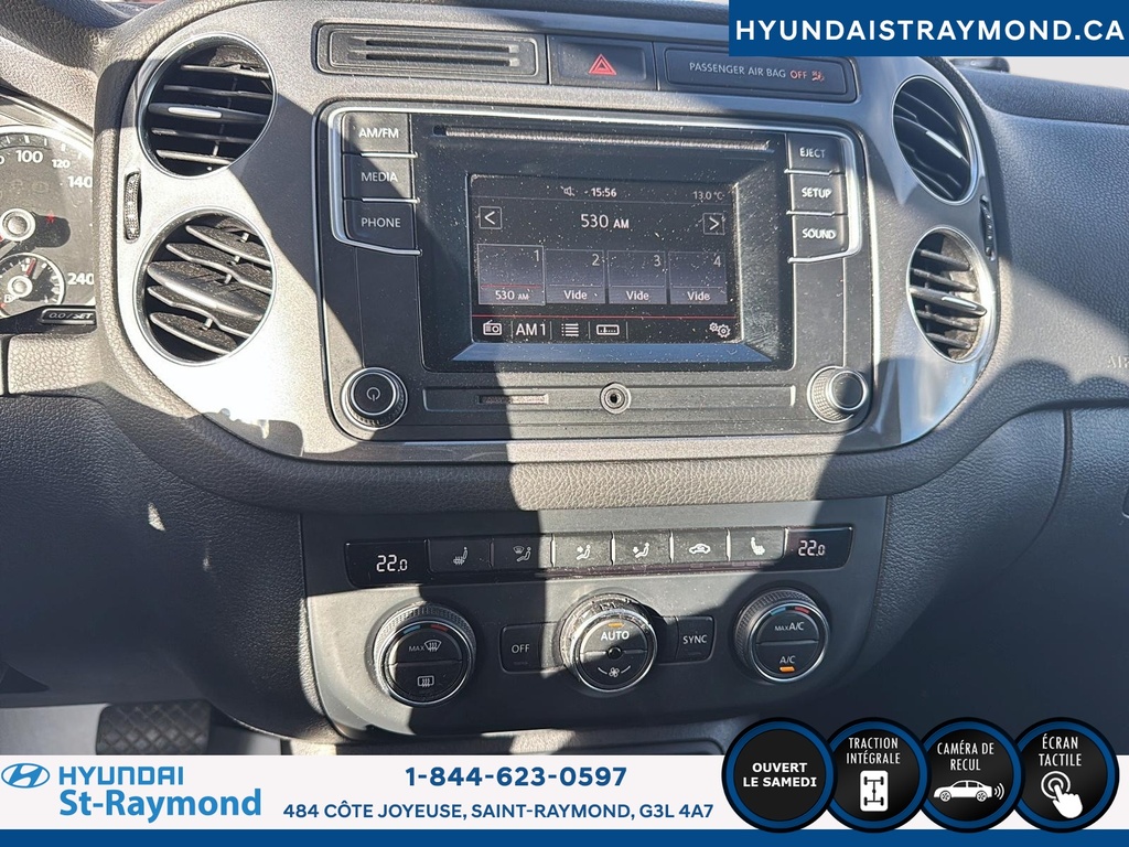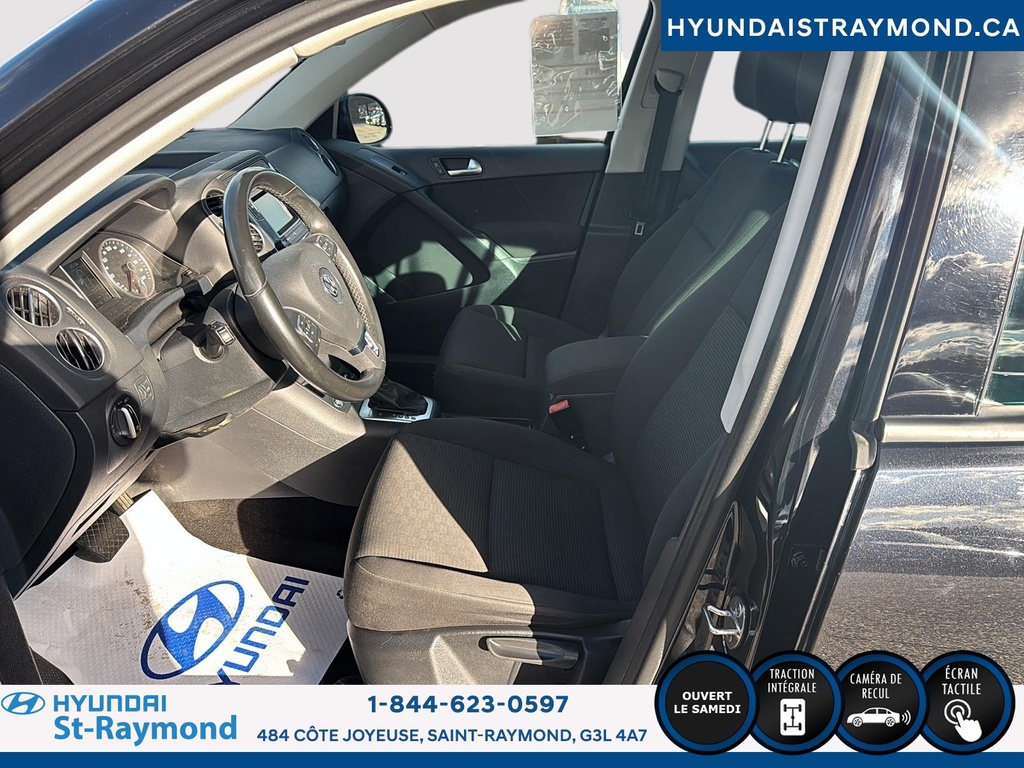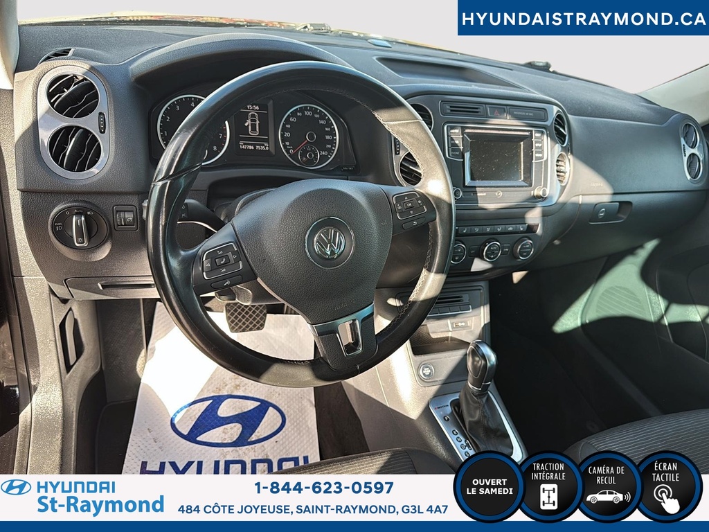 Le Volkswagen Tiguan 2016 Comfortline 4 portes 4MOTION BA, affichant 147 778 km, est un VUS polyvalent réunissant sécurité, confort et technologie. Offert en noir avec intérieur noir, il propose une expérience de conduite agréable et fiable, idéale pour les familles ou les amateurs de conduite urbaine et hivernale. CARACTÉRISTIQUES DU Tiguan Comfortline 4 portes 4MOTION BA »» Transmission intégrale 4MOTION pour une meilleure adhérence »» Démarrage par bouton-poussoir pratique »» Siège conducteur à réglage électrique CARACTÉRISTIQUES DE SÉCURITÉ AVANCÉES »» Caméra de recul facilitant les manoeuvres »» Coussins gonflables latéraux pour une protection accrue »» Système de freinage antiblocage »» Contrôle électronique de la stabilité PERFORMANCE ET EFFICACITÉ »» Moteur 2,0 litres turbo à essence sans plomb »» Transmission automatique à six rapports »» Transmission intégrale 4MOTION »» Consommation mixte estimée à 10,7 L/100 km CONFORT »» Sièges avant chauffants »» Siège conducteur à réglage électrique »» Toit ouvrant panoramique »» Rétroviseurs extérieurs chauffants TECHNOLOGIE ET CONNECTIVITÉ »» Intégration Bluetooth pour appels mains libres »» Caméra de recul intégrée »» Démarrage par bouton-poussoir »» Commandes audio au volant ESPACE DE CHARGEMENT »» Banquette arrière rabattable 60/40 »» Volume de chargement jusqu'à 1 589 litres »» Ouverture du coffre assistée »» Plancher de chargement ajustable APPRÉCIÉ DES AUTRES PROPRIÉTAIRES »» Tenue de route sécuritaire en hiver »» Confort de suspension sur routes variées »» Facilité d'utilisation des commandes »» Qualité de finition intérieure GARANTIE --> Garantie légale; --> Garantie d'usage; --> Garantie de durée raisonnable; --> Garantie contre les vices cachés. Le NIV de ce Volkswagen Tiguan Comfortline 4 portes 4MOTION BA 2016 est le WVGJV7AX0GW610672.